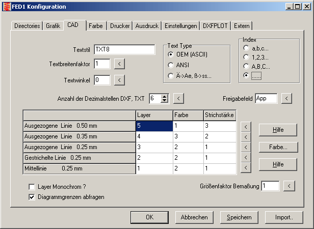 In der Standardeinstellung werden Änderungen durchnumeriert mit a,b,c.. Unter Datei->Einstellungen->CAD kann man umschalten auf 1,2,3.. Jetzt sind 2 weitere Optionen dazugekommen: Alternativ kann man den Änderungsindex in Großbuchstaben ausgeben, oder gar nicht. Wenn die Felder leerbleiben, kann man firmenspezifische Indexbezeichnungen wie AA, AB, AC o.ä. in der Datei $logo_1.dx$ mit dem Firmenlogo definieren, oder in der Textetabelle unter "Dokument > Zeichnungsdaten" (speichern als NULL-Datei).