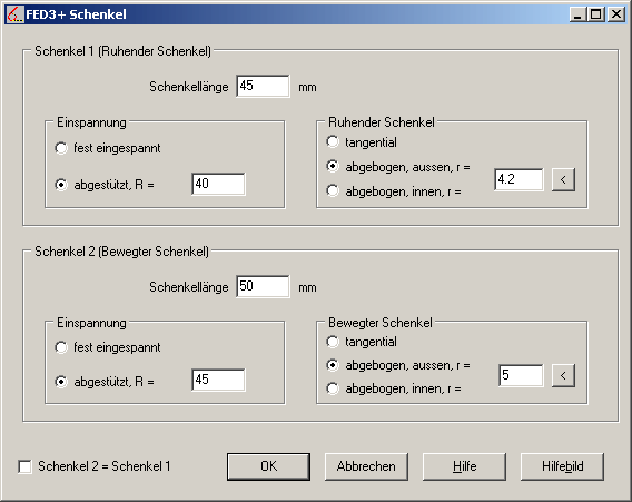 Bei Drehfedern mit abgebogenen Schenkeln war die Toleranz für den Biegeradius falsch angezeigt worden: die Toleranz beim Abbiegeradius geht nur ins Plus, angezeigt wurden bislang +/- Toleranzen.
