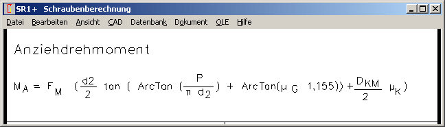 In SR1 wird diese Vorschrift nun für den Fall berücksichtigt, daß dwa einen kleineren Wert ergibt als der berechnete Durchmesser des Ersatzzylinders für die Berechnung der elastischen Nachgiebigkeit. Im Ausdruck werden die Außendurchmesser für die Berechnung der Flächenpressung aufgelistet unter "de pmax". Die maximale Flächenpressung pmax wurde umbenannt in pBmax (für maximale Betriebslast FM+FSA laut Definition in VDI2230:2003).