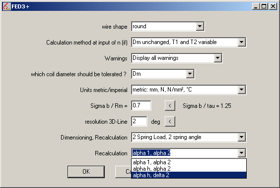 If you wanted to calculate a spring with one load and one spring travel, you had to set F1=0, s1=0 and L1=L0 until now. In the new version, you can configure this case at Edit->Calculation Method. Input windows show only one load and one spring travel or assembly length in this case.