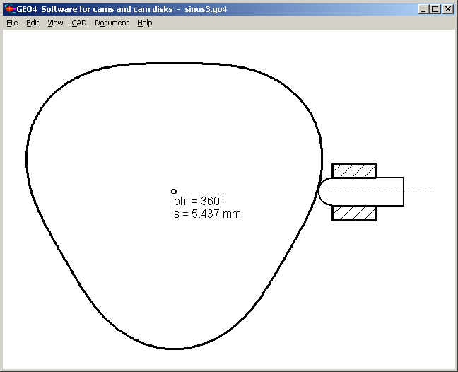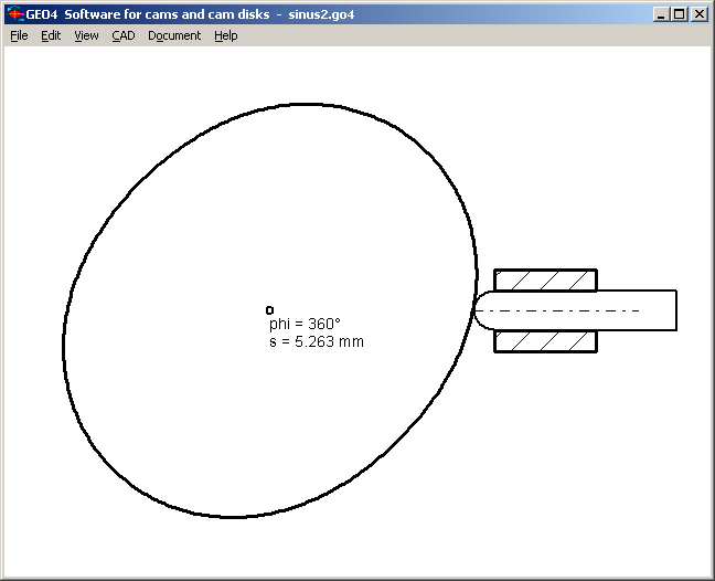 When defining a sinusoidal cam (r = r0+A*sin(phi)) for harmonic ram movement with sine curve of velocity and acceleration, you can now also define more than one sine stroke per revolution.