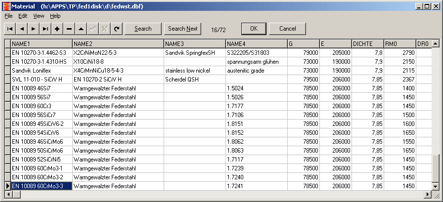 In die Werkstoffdatenbank der Federprogramme wurden weitere warmgewalzte Stähle (Drahtdurchmesser > 10 mm) nach EN 10089:2003 aufgenommen: