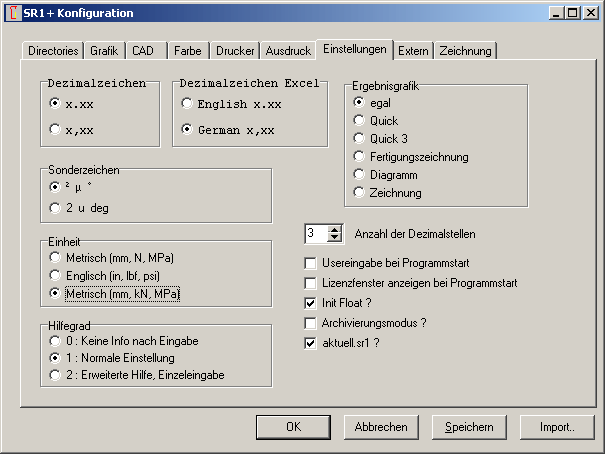 Bei großen Abmessungen sind die Zahlenwerte für Kräfte und Drehmomente manchmal unübersichtlich groß, deshalb kann man jetzt auch die Ein- und Ausgabedaten von Kräften in kN statt N und von Drehmomenten und Energie oder Arbeit in Nm statt Nmm konfigurieren.