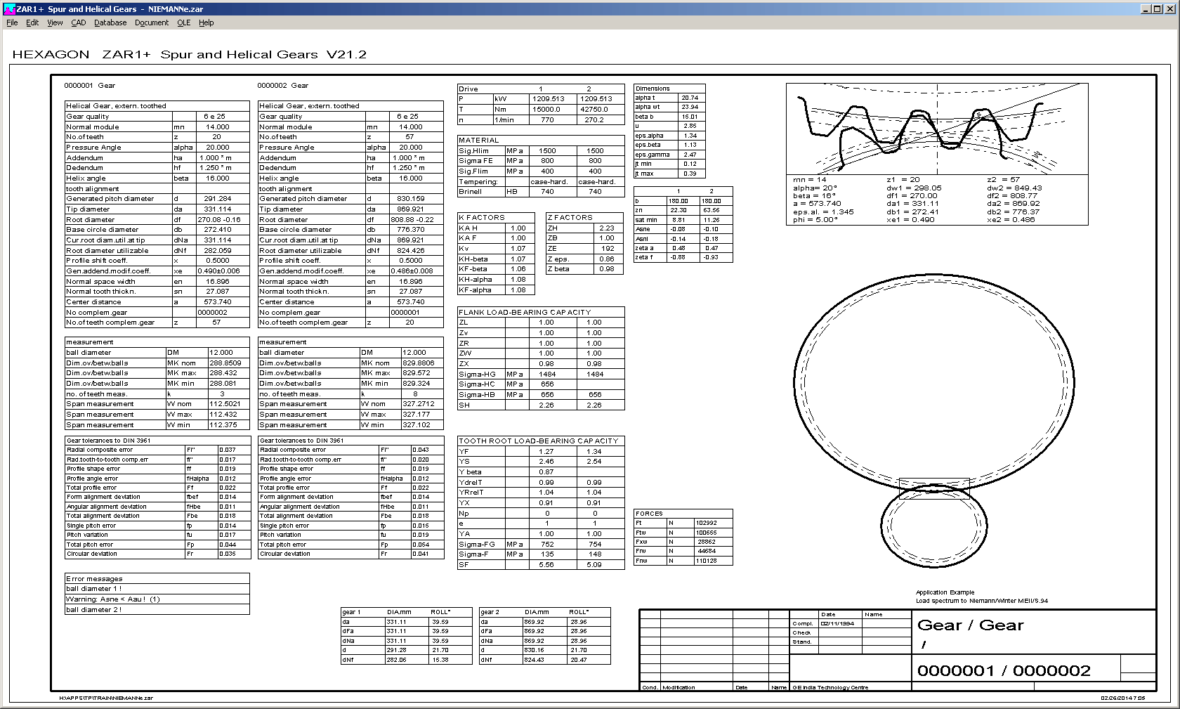 A "production drawing Quick3" as known from other programs is not available in ZAR5: too much data to fit into an A4 drawing frame. But a new "Production Drawing Quick4" is available now in ZAR5, with all data and drawings from Quick3, completed with tables of dimensions and measurement data of sun, planet and hollow gear, altogether in an A3 drawing frame according to ISO 7200 or DIN 6771.