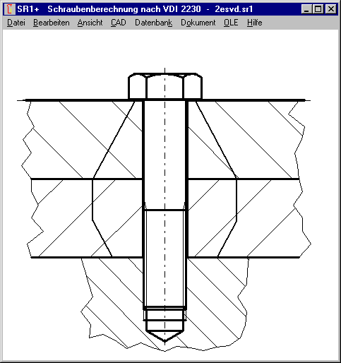In SR1+ kann man jetzt die Option "ESV -> DSV (phiD, dwNut)" setzen, dann wird der Druckkörper einer ESV gleich berechnet wie für eine DSV. Dafür wird der Lagerdurchmesser dw des Muttergewindes ermittelt gemäß Bild 9 in VDI 2230, dann ist dw= d + 2*tan(phi)*mgeo mit phi=Kegelwinkel DSV und mgeo = Einschraubtiefe, evtl. abzüglich einer Gewindesteigung P.