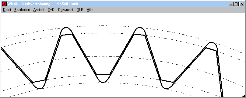 Die berechneten Profile kann man maßstäblich in CAD übernehmen. WNXK und WNXE sind besonders geeignet für die Erstellung beliebiger Zahnprofile mittels Drahterodieren oder 3D-Drucker, und für Hersteller von Werkzeugen (Räumwerkzeugen) und Lehren.