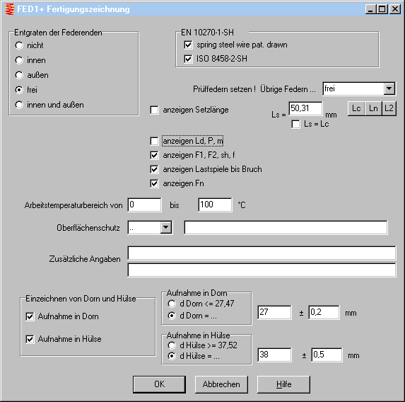 Wenn für warmgeformte Federn gezogene Oberfläche angehakt wird, oder gewalzte oder geschliffene Oberfläche für kaltgeformte Federn, wird die Oberflächeneingabe vom Programm korrigiert.