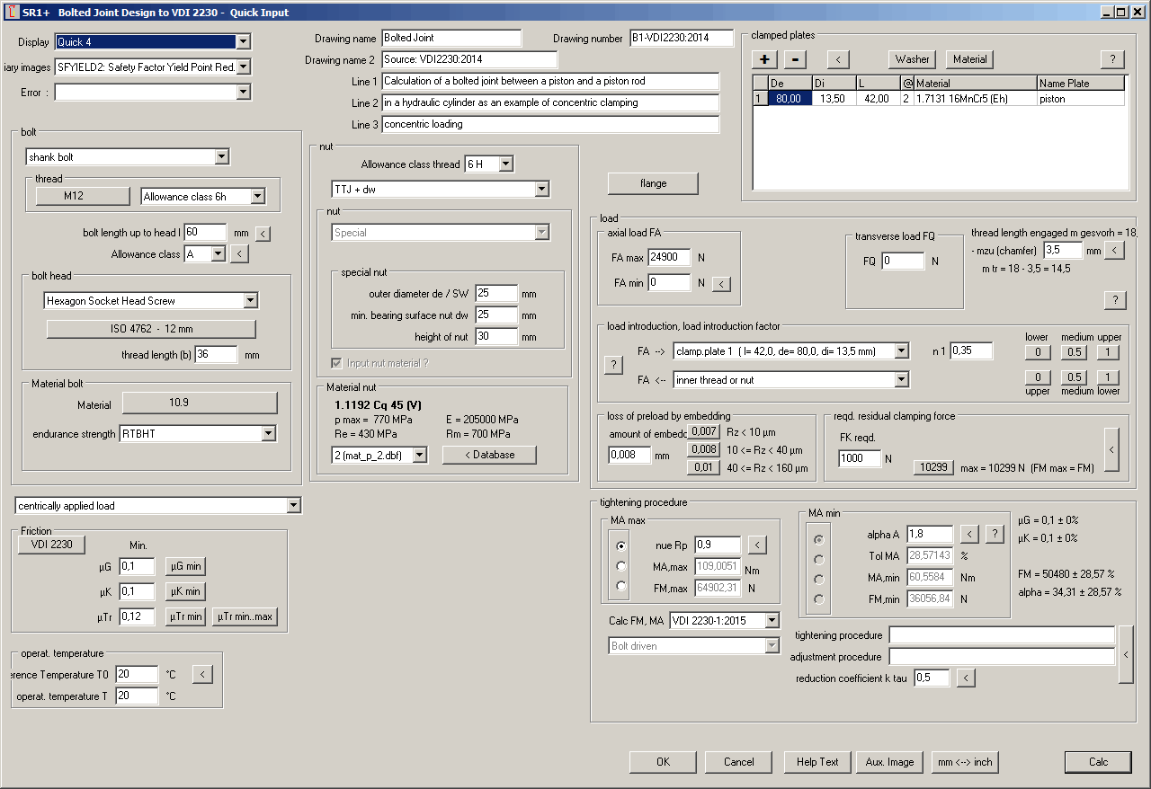 If you enter torque and additional bending moment in WN3, bending moment has no influence on pressure and safety pperm/pmax. According to DIN 6892, WN3 calculates bending stress Sigmabmax at the ground of the notch in the shaft from from bending moment.