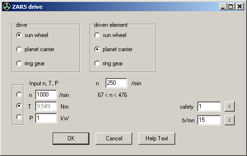 And you can define a coefficient for safety and ratio face width / module. Safety less than 1 calculates smaller gears, and safety > 1 calculates larger planetary gears.