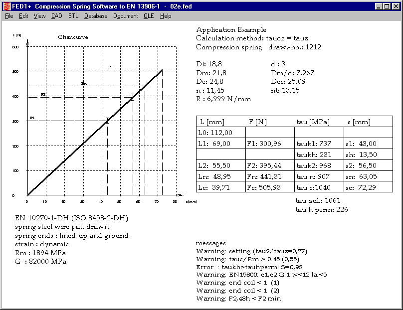 The freeware can also be used internal. If no floating license of FED1+ is available from network, you can calculate the spring with XFED1 and save. FED files of XFED1 and FED1+ are equal and can be used with FED1+.