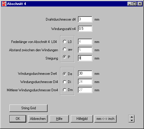 FED7: Eingabe L0 oder aw oder P und Dm, Di, De bei Windungsabschnitten