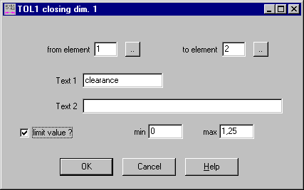 Optional input of limit min/max has been added to the input of closing dimensions. TOL1 then calculates reject rate of the dimensions that lay outside the defined limits.