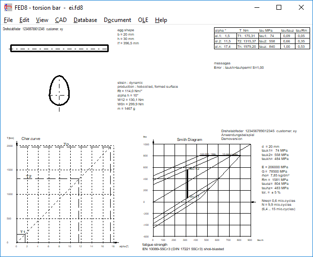 Strength properties for Goodman diagram of OTEVA 91 (VD-SiCrVMo) were too low in not nitrided state, because data strength values were based on d=1 instead to d=3.85mm. Data in fedwst.dbf have been corrected. Thanks to Mr. Gaedtke of HAWE Hydraulik for his hint.
