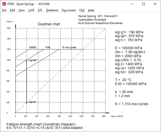 Für Federstähle nach EN 10132-4 aus der Werkstoffdatenbank fed9wst.dbf wird nun auch ein Goodman-Diagramm angezeigt. Die Daten stammen aus der DIN 2093:2013-12 für Tellerfedern.