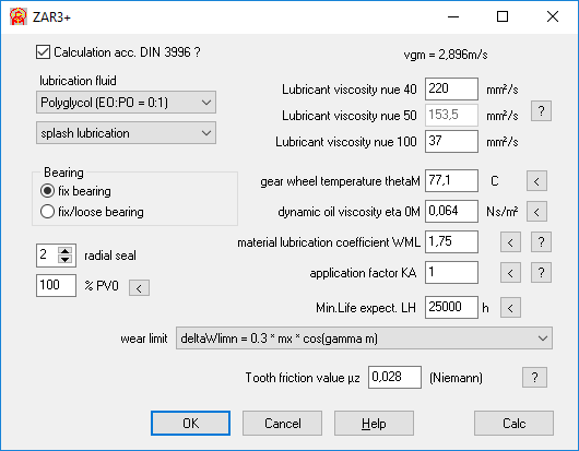 The strength of worm gears was previously calculated according to DIN 3996:1998-09. Now, the newer edition of 2012 has been integrated. ZAR3 + can now calculate strength and efficiency according to 3 methods: according to Niemann, according to DIN 3996: 1998 and according to DIN 3996: 2012. There were some changes on input: