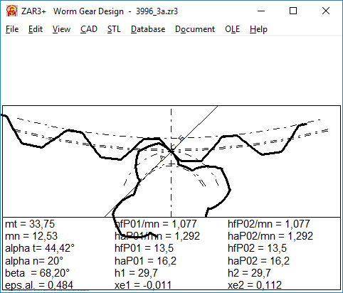 The axial pressure angle of the worm alphax was incorrectly output (smaller than alphan instead of larger than alphan). This only had an effect on worm gears with ZA profile, because there is alphax = alpha0, and alphan is calculated.