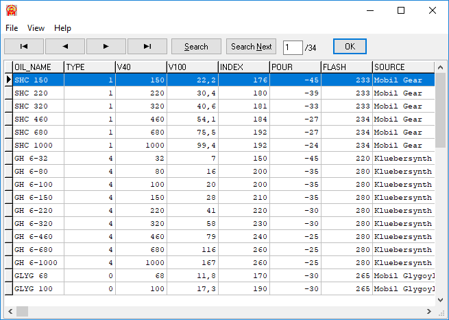 For entering the lubricant viscosity at 40 ° C and 100 ° C, there is now a small lubricant database as input help.
