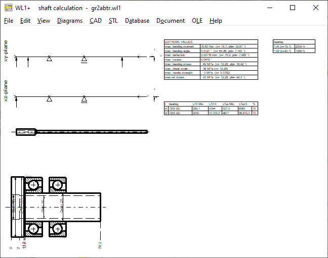 The GR2 software for eccentric gearboxes now generates WL1 files and ZAR files for the input shaft, output shaft, drive pin (WL1 +) and gear pair (ZAR1 +). The machine elements with load data can be opened directly with WL1+ and ZAR1+.