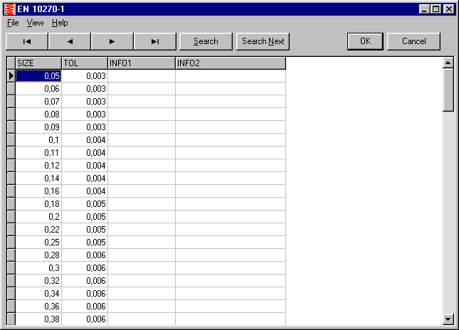 Click "DB" button at "Edit->Database->Recalculation" to get EN 10270-1 database (cold-formed springs) or DIN 2077 (hot-formed springs).