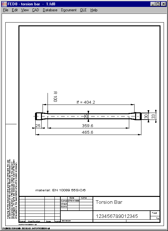 Newest version of FED8 software generates a production drawing of the calculated torsion bar.