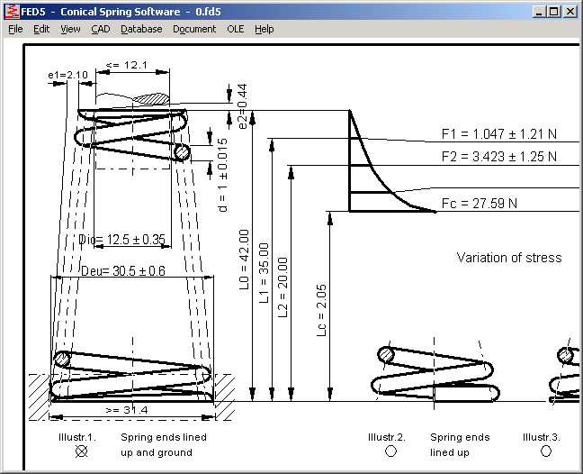 You can now select dimensioning of inner, outer and central coil diameter for upper and lower end of the spring (at "Edit->Production). Until now, it was fixed to center diameters Dmu and Dmo.