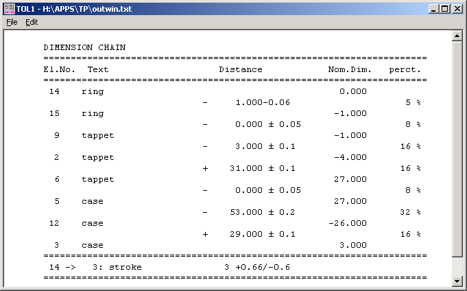 Percentage of the tolerance chain elements has been added to the dimension chain printout. This makes it more clear, where modifications have the most effect.