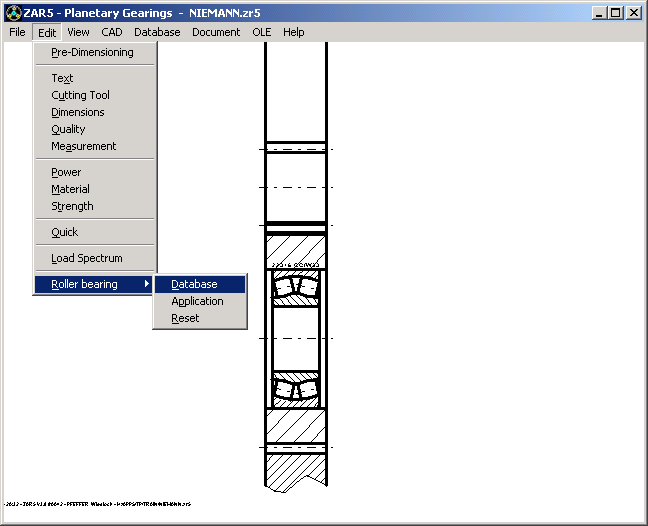 At "Edit->Roller Bearing" you can select "Database, Application, Reset" to select planet gear roller bearing from database and enter application data. Select "Reset" to compute planet gear without roller bearing.