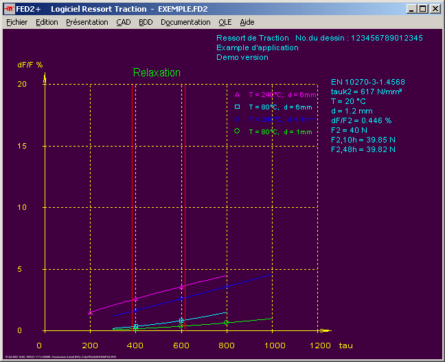 La courbe caractéristique du ressort apparaît avec que les données les plus importantes des ressorts dans la présentation rapide.