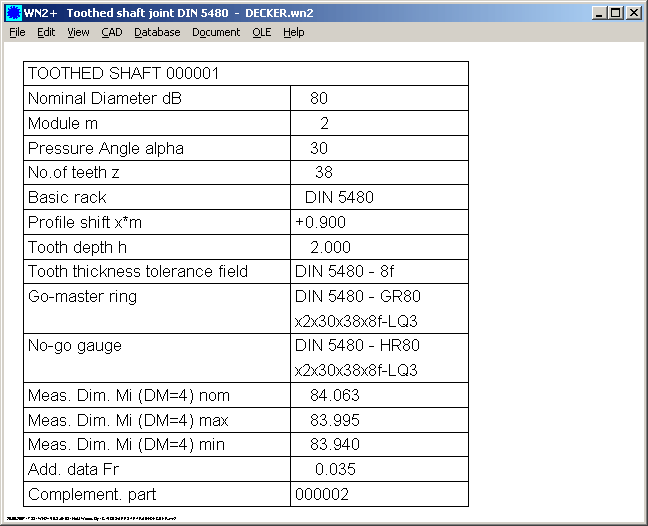 WN10 generates profile drawings, tables of toothing data, production drawing. Tooth profile may be exported as true-scale drawing into CAD or CNC software by means of DXF or IGES file.
