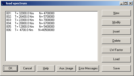 Like in ZAR1+ and ZAR2, a load spectrum may now be defined and calculated with ZAR6.
