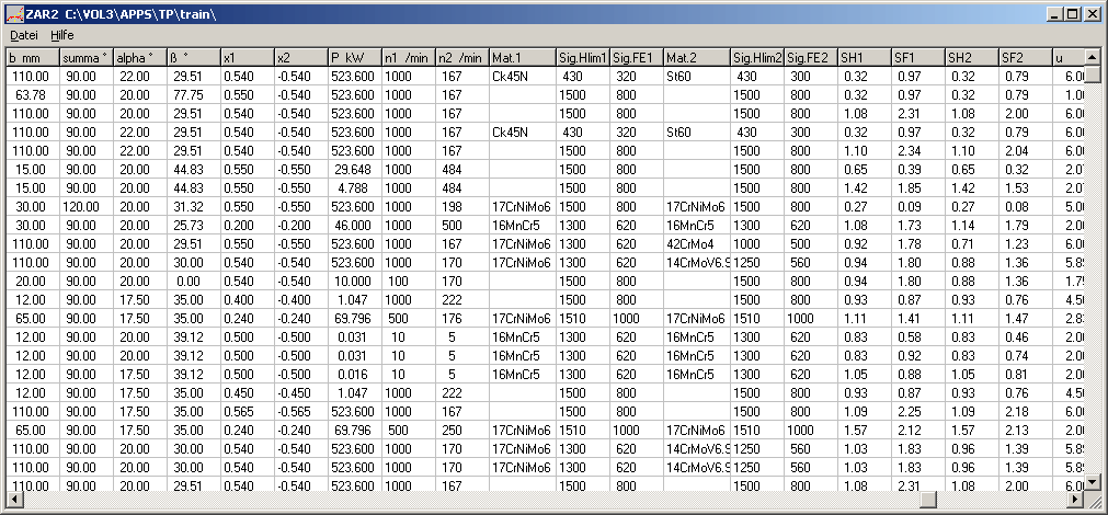 Eine Voransicht als Tabelle mit den wichtigsten Daten gibt es jetzt auch in allen Zahnradprogrammen. Unter "Datei->Öffnen Tabelle" kann man alle Berechnungen im aktuellen Ordner nach jeder beliebigen Größe sortieren (Klick mit rechter Maustaste ins Titelfeld), oder per Mausklick auf eine Datei im Hintergrund die Quick-Ansicht anzeigen.