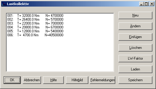Gleich wie in ZAR1+ und ZAR2 kann man jetzt auch in der ZAR6-Software für Kegelradgetriebestufen ein Lastkollektiv definieren. Aus dem Lastkollektiv werden die Anwendungsfaktoren KA berechnet.