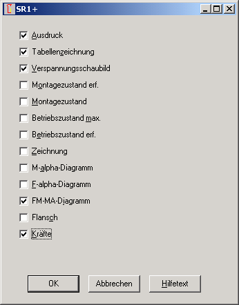 Im "Print Macro" Fenster von SR1+ kann man ankreuzen, welche Ergebnisse, Diagramme und Zeichnungen zusammen ausgedruckt werden sollen. Diese Möglichkeit gab es schon in einer früheren Version, wurde dann aber wegen zeitweise aufgetretener Fehlermeldungen wieder herausgenommen. Die Zugriffsverletzungen sollten jetzt nicht mehr auftreten. Die Einstellungen werden in der cfg-Datei mit abgespeichert. Es ist vorgesehen, den Serienausdruck auch in die anderen Berechnungsprogramme aufzunehmen.