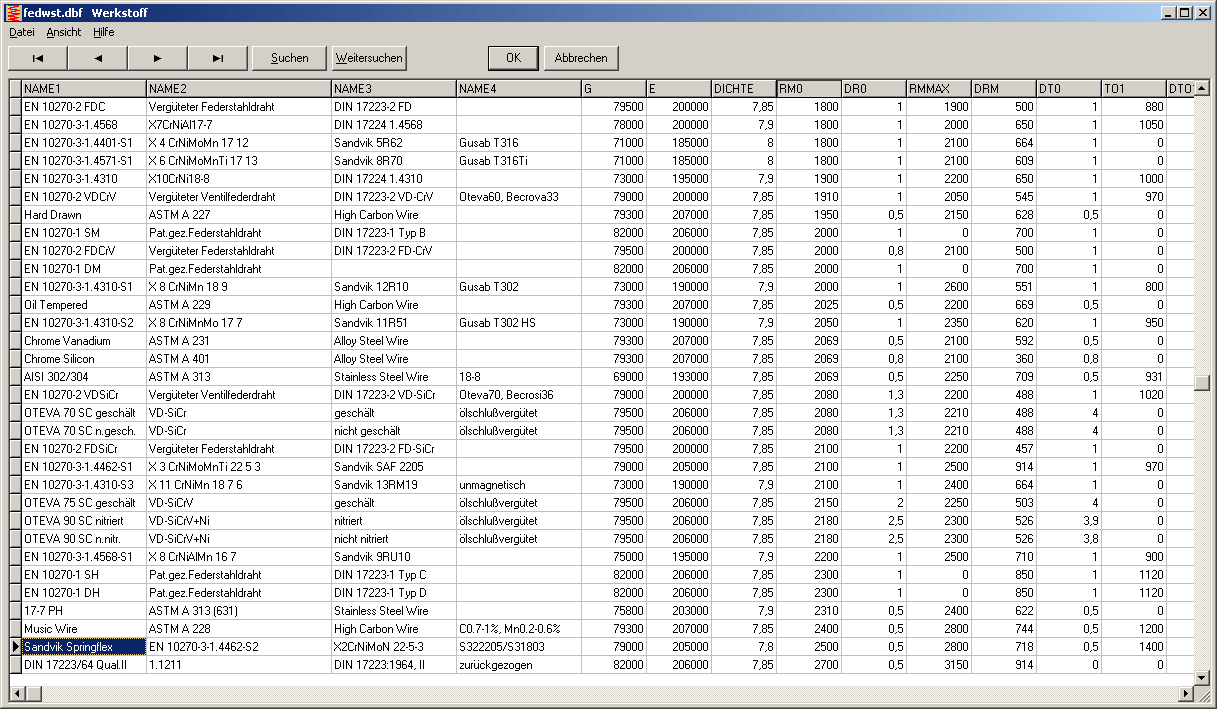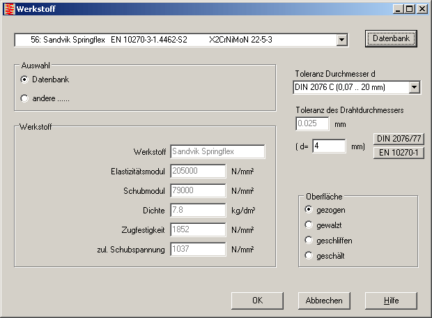 In die Werkstoffdatenbank wurde ein neuer hochfester, nichtrostender Federstahldraht "Springflex" von Sandvik aufgenommen. "Springflex" ersetzt "SAF 2205" von Sandvik. Kunden können sich Datenblatt und aktualisierte Datenbankdateien im Kundenbereich herunterladen.