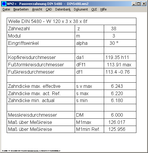 WN2 - Tabelle (Datenfeld) nach DIN 5480:1991 und DIN 5480:2006