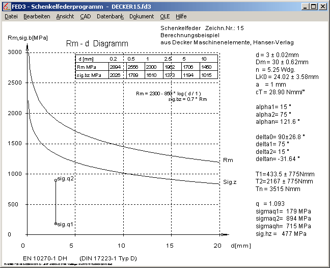 In FED3+ wurde das Diagramm mit Zugfestigkeit und zulässiger Biegespannung als Funktion des Drahtdurchmessers neu aufgenommen. In den Diagrammen in FED2+, FED3+, FED5 und FED6 wurde eine Tabelle mit tau zul und Rm für verschiedene Durchmessern aufgenommen.