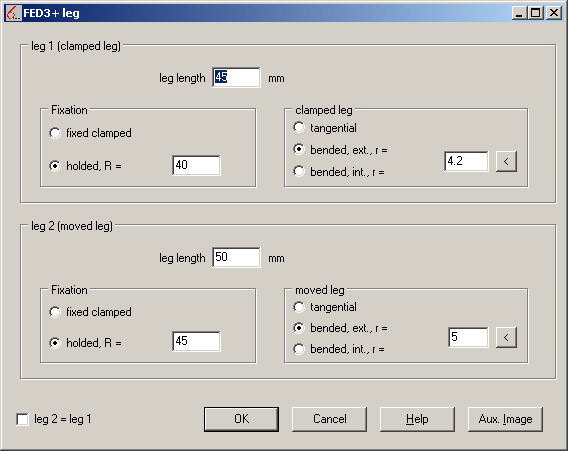 If you define bent leg with bending radius smaller than wire diameter d, you get an error message (r < d). New version generates a warning even if bending radius r < 1.5 d. If you do not wish this warning, you can suppress it at "Edit->Calculation Method".