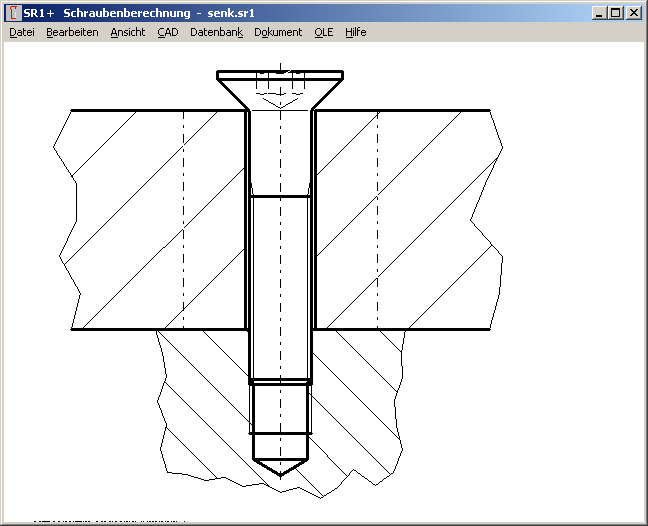 Zylinderkopfschrauben mit Innensechskant werden häufig versenkt. Für die Berechnung in SR1 muß die Senkung abgezogen werden, die einzugebende Länge des ersten Klemmstücks ist dann die tatsächliche Länge abzüglich der Höhe der Senkung.