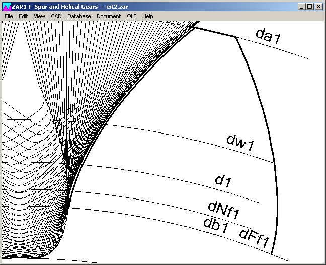 For protuberance profile and input of a finishing allowance q (at "Edit->Quality), tooth root fillet and tooth root diameter are generated by pretreatment tool. Finishing tool only grinds the flank, tooth root fillet remains unchanged. Until now, configuration "draw tooth root curve" (at CAD->Settings) was set as default. Now, "draw tooth root curve" is reset as soon as you define protuberance profile and machining allowance q.