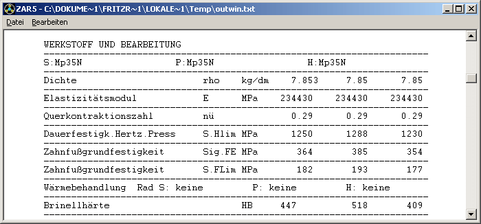 Da es immer wieder Verwechslungen der Zahnfußfestigkeiten SigmaFE und SigmaFlim gibt, wird die Zahnfußgrundfestigkeit des Prüfrads SigmaFlim = SigmaFE/YST = SigmaFE/2 im Ausdruck mit ausgegeben.