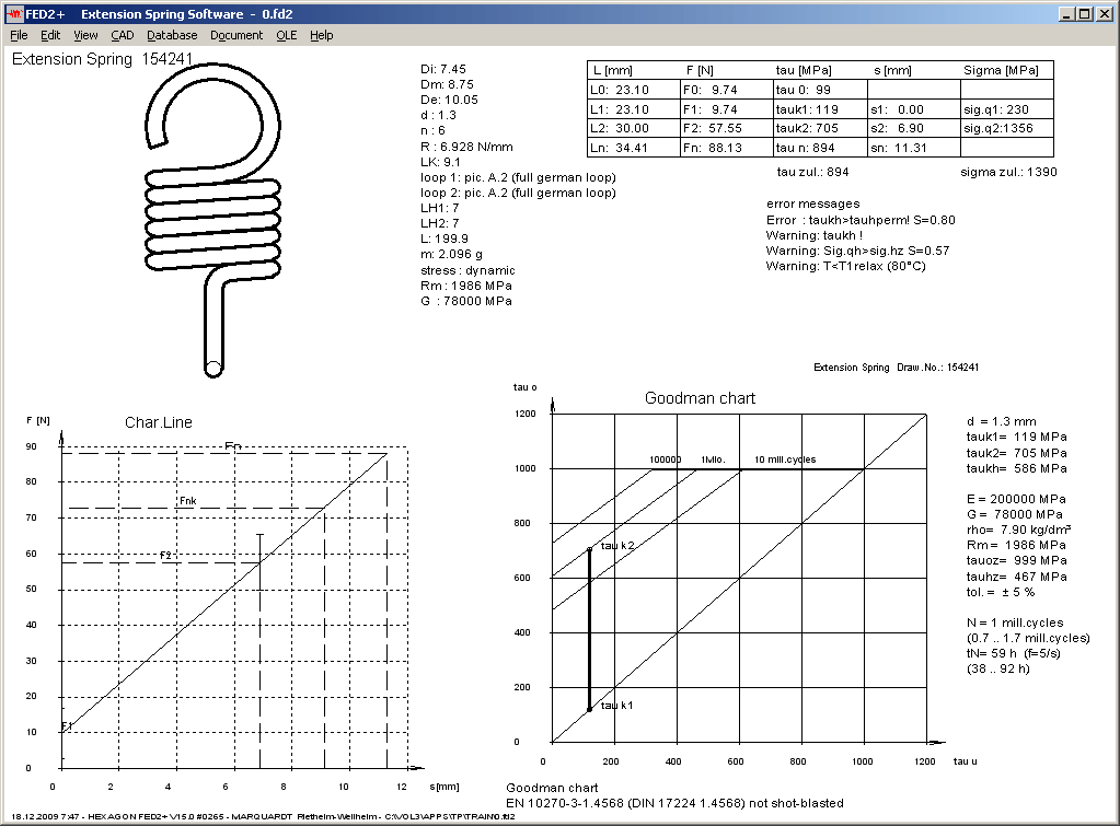 FED1+, FED2+, FED3+: Calculation with 1 Load and 1 Spring Length