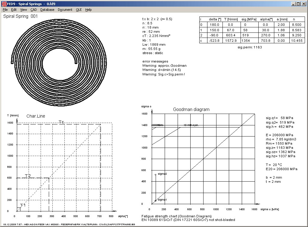 New Overview Graphic with load-extension diagram, Goodman diagram and result tables on one page. Coil distance and number of coils has been added to the table with spring angles, torque, and bending stress.
