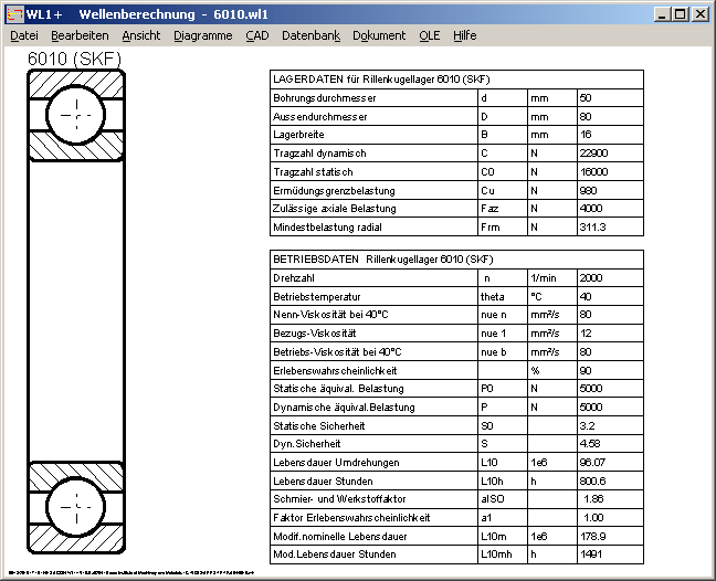 Die mit LG1, WL1+ und ZAR5 gelieferten Wälzlagerdatenbanken wurden überarbeitet: Bei Rillenkugellagern haben sich Tragzahlen und Grenzdrehzahlen geändert, bei Pendelkugellagern, Zylinderrollenlagern und Kegelrollenlagern gab es Ergänzungen. Bei allen Datenbanken wurde die Ermüdungsgrenzbelastung Cu für die Berechnung der erweiterten nominellen Lebensdauer nach DIN ISO 281 ergänzt. Weil dadurch die Datenbank um ein Feld erweitert werden musste, sind die alten dbf-Dateien mit den neuen Programmversionen nicht mehr verwendbar.