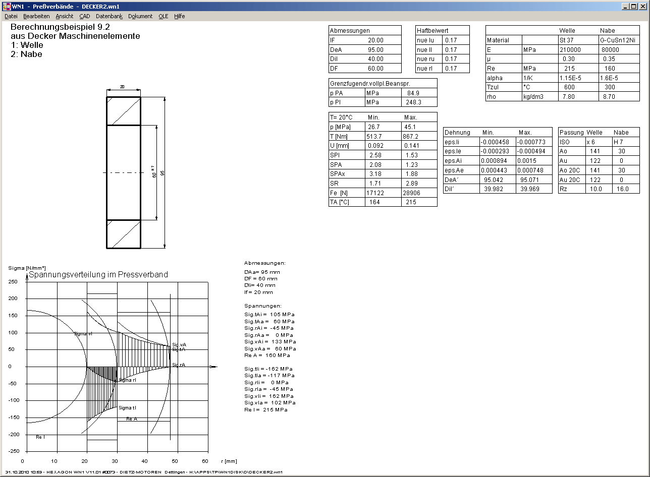WN1 - Pressungs- und Drehmomentverlauf bei abgestufter Nabe