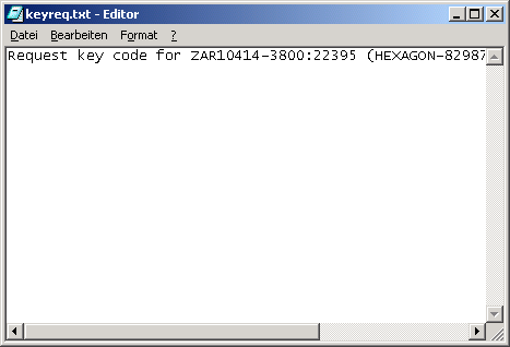 Key code request als Textdatei für Insel-Rechner ohne Internetzugang