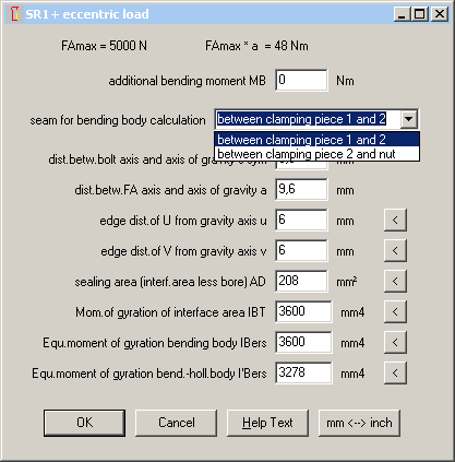 At "Eccentric Application", an additional bending moment can be entered. As defined in VDI2230-1:2014, additional to bending moment FA * a. MB is always static, and can be with positive or negative value.