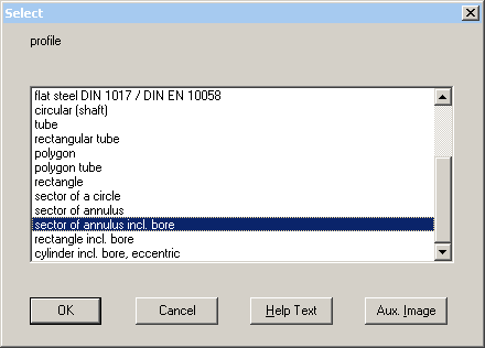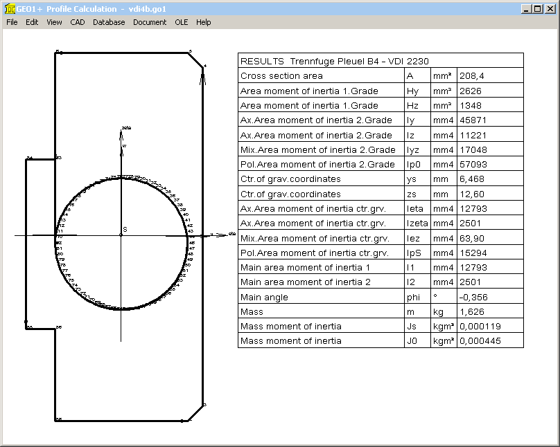 GEO1 software is a good tool to calculate interface section and section of bending body of eccentric loaded bolted joints. But the input of coordinates was inconvenient for the annulus sector of VDI 2230 example B5. Therefore, sector of circle and sector of annulus has been added to the predefined profiles, so that you can define the geometry of the cross section now by input of external and inner diameter, arc angle, bore diameter and pitch-circle diameter. Other new predefined profiles are "rectangle with hole" and "circle with eccentric hole" to calculate interface sections of prismatic and cylindrical clamping plates of bolted joints. Pre-defined profiles are available in GEO1+ only, not in GEO1. We will no longer provide GEO1, only GEO1+ with profile databases and pre-defined profiles is available in future.