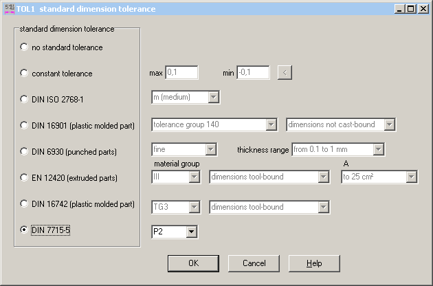 Tolerances according to DIN 7715 part 5 for elastomere parts has been added to the variety of selectable tolerances.