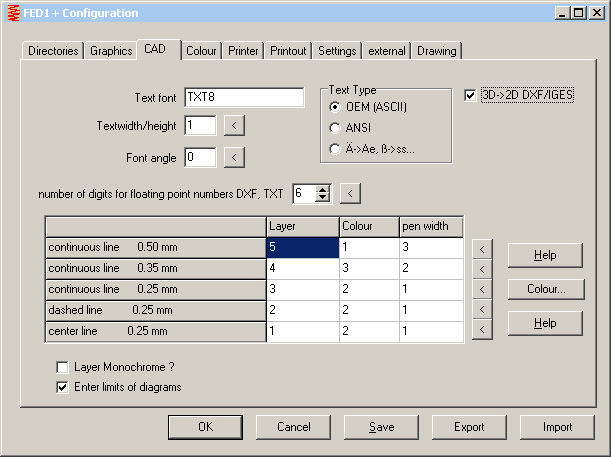 Configuration 3D -> 2D DXF-IGES