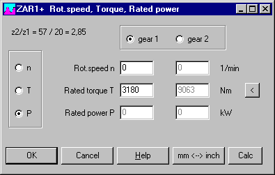 In earlier versions, ZAR1+ calculated fatigue strength only if speed > 0 and power > 0. Since release 25.0, ZAR1+ calculates static safety SH and SF for the given torque even if speed n=0.